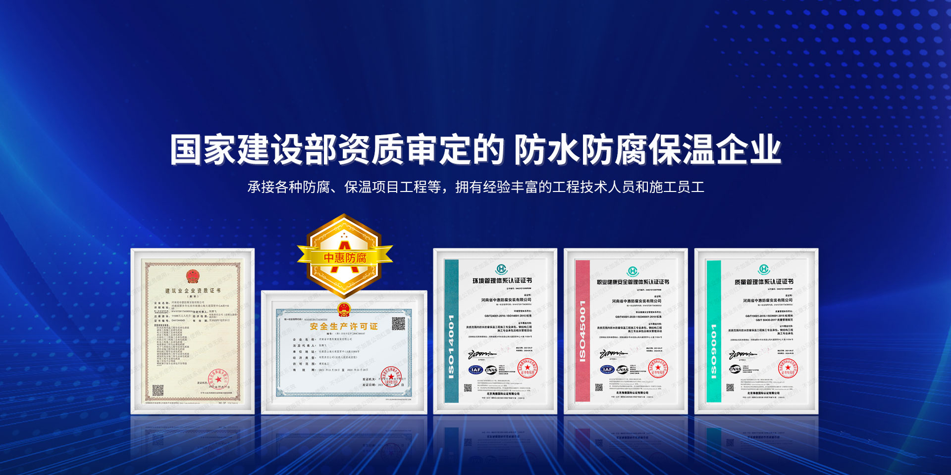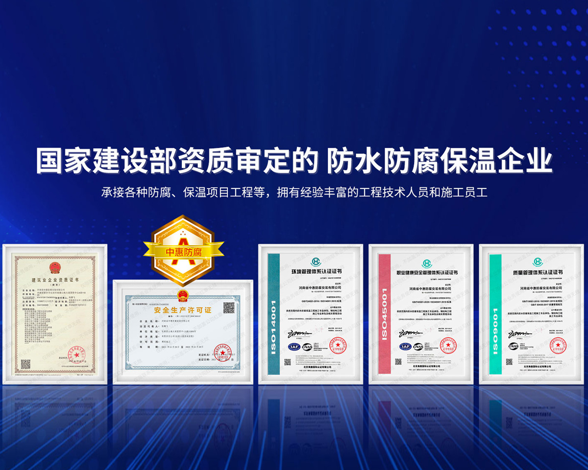 公司經營范圍:防水防腐保溫工程;消防設施工程;建筑裝修裝飾工程;建筑機電安裝工程;電力工程;建筑工程;石油化工工程;工業清洗工程;油罐清洗工程;鋼結構工程;環保工程;模板腳手架工程;電纜防火封堵、防污閃噴涂、外墻外保溫工程;各類施工勞務作業;設備維修、船舶鉚焊、涂裝;電力工程材料、建材、防水材料、防火材料、防腐保溫材料銷售,并相繼通過了GB/T19001-2008idtISO9001:2008GB/T50430-2007質量管理體系認證證書。GB/T24001-2004idtISO14001:2004環境管理體系認證證書。GB/T28001-2011idtOHSAS18001:2007職業健康安全管理體系認證證書。公司是中國防腐蝕于防護協會、中國施工企業管理協會、電力協會和中國鋼結構防水協會會員單位。 公司的經營業務涵蓋了石油、化工、電力、冶金、煤炭、船舶、國防、燃氣、水利、環保、交通運輸、航空及國防軍工和輕紡市政等行業的防腐保溫絕熱設備。鋼結構安裝、防火、防水、金屬噴鍍、聚脲噴繪、陰極保護、防滲透堵漏、玻璃鋼及各種磚版材料襯里、橡膠襯里、煙氣硫和耐酸溶劑腐蝕等工程施工。公司連續十年榮獲“省市先進施工企業”“安全生產先進單位”“重合同,守信用企業”和“AA***資質企業”的稱號。2000年被命名為市級文明單位,2002年被國家工商行政管理局命名為“重合同,守信用的企業”、被中國工業防腐蝕技術協會命名為“防腐蝕企業,能源節約及環境保護領域有豐富的經驗和***的業績。工程一次交驗合格率100%。其中攀枝花鋼鐵公司煉鐵廠四號高爐及熱風爐防腐工程、上海寶鋼公司煤氣柜防腐工程、撫順石油一廠裝置防腐項目、齊魯石化公司稀烴廠高塔防腐工程、吉林化學工業公司煉油廠油罐防腐工程、天津石化熱電廠六號爐頂棚聯絡管保溫工程、大慶油田(太倉)力神泵業工程、中國化學工程第十一建設工程、中原油田勘探局工程、中國石化銷售有限公司華北分部、魯皖輸油管道工程、貴州開磷息烽合成氨工程、陜西黃陵煤化工程、中國石油天然氣西部管道塔里木輸油工程、邯鋼集團邯寶鋼鐵公司煉鐵工程、德州供電工程、吉寶(南通)船廠工程,偃師華潤熱力工程、鄭州熱力總公司。 河南省中惠防腐安裝有限公司愿以豐富的施工經驗,***的技術,***的設備,***的管理,***的服務,竭誠為國內外廣大的用戶提供***滿意、******的工程作品。 我公司愿與國內外同仁一道,團結協作,共同推進防腐蝕行業發展! 公司地址:河南省長垣縣建設路北段360號 固定電話:0373-8866488 郵編:453400 網址:http://www_zhff_com_cn.316idc.com